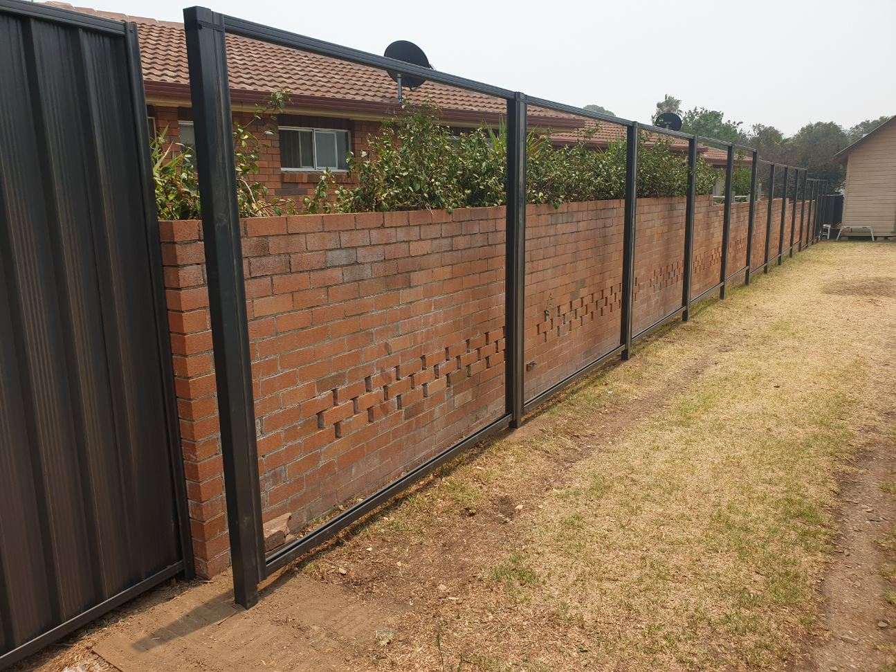 • The fence had to be built on the inside of a brick wall. The were also two other sections of fence, requiring different heights and material.